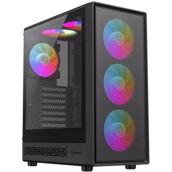 کیس کامپیوتر گیم مکس GameMax Storm 2 با بدنهای مشکی و خطوط جذاب نورپردازی ARGB، جلوهای مدرن و زیبا به سیستم شما میبخشد.